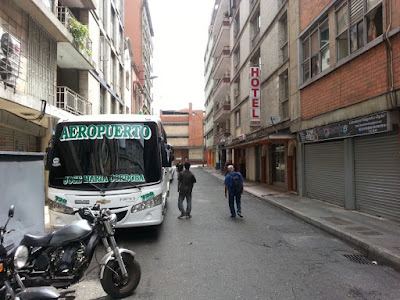 Peguei um taxi para o centro da cidade. A corrida deu 8500 pesos (R$11,50). Atrás do Hotel Nutibarra fica o ponto final do ônibus para o aeroporto: